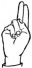 На ћирилици написано ДОБРИЈА ДЕДИНАЦ састоји се из 14 слова [?]. Исписано ћириличном једноручном азбуком за глувонеме: